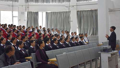 10月19日,山东航空公司的培训部李冰、刘学看望乘务学员,并于8教106举办山航企业文化讲座。