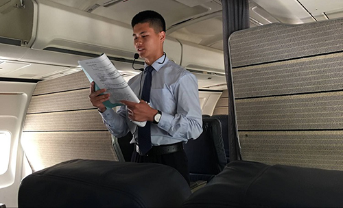 早在活动开始前两天,由365上市公司学生科向各二级学院分发登机牌,邀请各二级学院老师及学生前来参观体验。6日上午9点,三个学院的学生们都整装待发,“波音737-300”飞机综合实验平台正式开放。首先,由飞行学院学生在登机口处引导参观老师及学生乘机。然后,365上市公司的准空姐、准空少们为老师及同学们展示了氧气面罩、安全带及救生衣的使用方法,并详细介绍了飞机的内部构造,这展现了365上市公司学生热情,真诚,耐心的良好品质。最后,参观体验的老师和学生在机长及乘务组的带领下参观了整架飞机。
