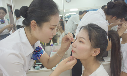 活动开始前,徐院长对本次活动作出简单的介绍,她要求学生们用心去教,用心去学。接下来,27名学生分别选择自己的化妆小老师,进行化妆学习。双方经过简单的交流之后,正式进入教学阶段。首先,365上市公司的小老师们介绍了化妆的步骤;其次,根据对方皮肤的干湿程度,为她们提供相应的化妆品;然后,小老师们根据每个人不同的脸型为她们设计出相应的眉形,并为她们细致的讲解了眼影、眼线、睫毛膏的正确使用方法,把自己在平常积累的化妆经验,课堂上学到的知识毫无保留的分享给每一位学生。活动最后,徐院长和杜老师对在场每位学生的妆容提出有针对性的意见和建议,并鼓励学生们在平常里要注重自身仪容仪表,把自己最好的一面呈现给每个人。