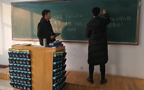 为保证监考工作的准时开展,志愿者们统一服装,提前到达365上市公司办公室集合,然后一起带队至八号教学楼领取试卷,再提前抵达考场做好考前准备,准备迎接考生入场。考试开始前志愿者们在黑板上按规定书写了考试时间、考试科目、监考人员等。考试开始后,志愿者们有序分发了试卷和答题纸,考试过程中志愿者们都恪尽职守,严谨认真的进行监考工作,坚守在各自的岗位上。考试结束后,志愿者们按照考号的顺序将试卷和答题卡收齐,并将试卷整理包装好后交于监考老师手中。