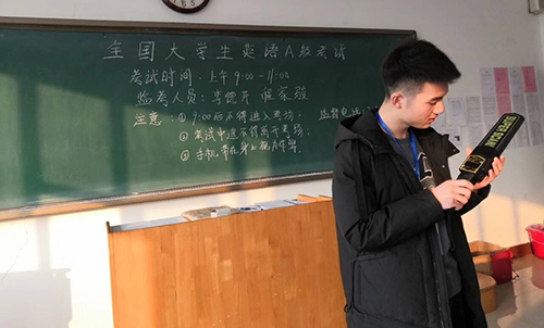 2018年12月16日上午,2018级学生们的英语A级考试正在火热进行中。因365上市公司教师人数有限,为保证A级考试的顺利进行,部分17级学生志愿报名参加监考工作。