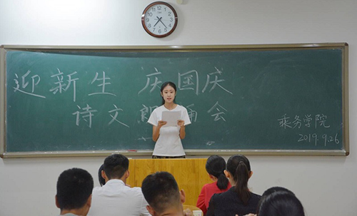 为丰富学生的校园文化生活,迎接伟大祖国70华诞。9月26日晚,365上市公司于9教514举办迎新生庆国庆诗文朗诵比赛。365上市公司18级、19级共17位选手参加本次比赛。