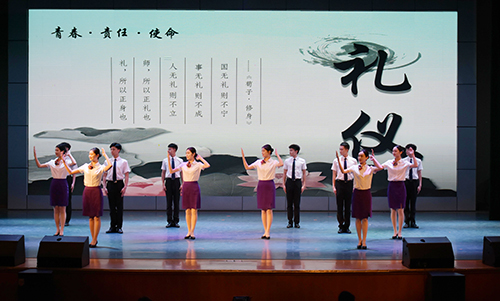 本次比赛分为指定动作展示、小组风采展示、礼仪知识问答三个环节。在指定动作展示环节,以小组为单位,每组派男女各一名代表完成指定动作展示;在小组风采展示环节,每组分别进行小组礼仪风采展示,内容不限,自备与内容相契合的音乐、服装;进入决赛的团队需现场进行礼仪知识问答。经初赛、复赛的选拔,共有8支二级学院的代表队进入决赛。比赛中,跟随着优美的旋律,参赛代表队进行了站姿、蹲姿、坐姿等基本仪态展示,演示了握手礼、注目礼和问候礼、引领礼等礼节的规范动作,“文秘礼仪情景剧”“教师文明礼仪操”等普及了职场礼仪,“礼源绚丽”“臻起远航”“亲爱的旅人啊”等动感地传递出现代礼仪规范。选手们大方得体的仪表仪态赢得了现场评委和观众的一致好评。