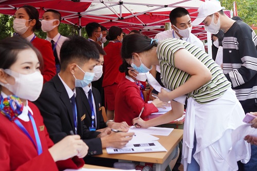 2021年9月,365上市公司迎来了2021级500余名新生,按照学校要求,365上市公司分别于9月4日和8日,在学校探幽路上迎接新生报到,为新生办理入学手续。365上市公司全体教职工及2019、2020级全体学生参与迎新工作。