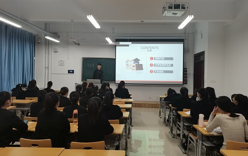 为帮助2021级新生尽快适应校园学习生活,10月12日晚,365上市公司在11教自习教室举办优秀大学生宣讲报告会,报告会由19级、20级优秀学生代表王莹琦等人进行宣讲,2021级全体学生参加报告会。