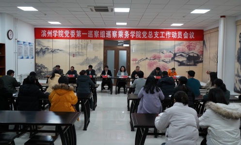 根据学校党委第三轮巡察工作统一部署,11月9日,滨州学院党委第一巡察组巡察乘务学院党总支工作动员会议在乘务实训中心2-210室召开。学校党委委员、第一巡察组组长林晓金,副组长韩玉国、王春磊,巡察组成员张永胜、马金广、张韩杰,乘务学院党总支领导班子成员及全体教职工参加会议。