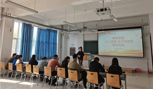 活动前,邢旭辉向2022级学生详细介绍了“云上青春”女子仪仗队的工作内容和职责,并预祝同学们能够如愿进入仪仗队工作。活动中,参加竞选的同学依次走向讲台,他们从自我介绍、才艺展示,礼仪展示等方面向评委老师们进行全面展示,并表明了自己竞选的信心和决心。参与竞选的每位同学都自信满满,言谈举止中流露出对加入仪仗队的渴望和执着。