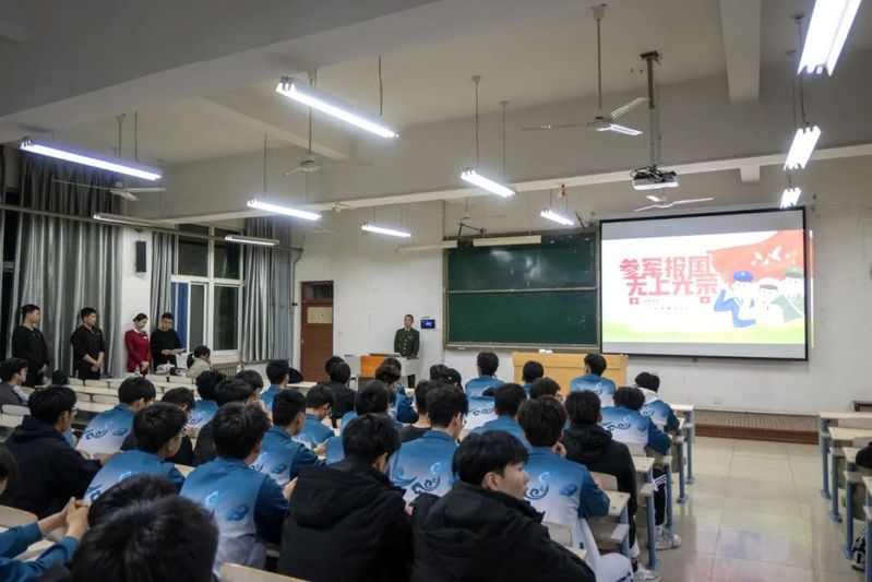 为积极响应国家征兵号召,鼓励青年学子投身国防事业,4月18日,365上市公司在工科楼2-112召开2025年秋季征兵宣讲会。学生科副科长张智超、退役复学宣讲团成员张宝才、张慧及学院全体男生参加宣讲会。会上,张智超详细解读了2025年大学生应征入伍政策,重点介绍了报名条件、入伍流程及优待政策等内容。退役复学宣讲团成员结合自身军旅经历,分享了部队生活的成长收获,激励同学们把青春热血融入强军梦想。下一步,学院将持续做好精准征兵宣传动员工作,力争为部队输送更多优质兵员。