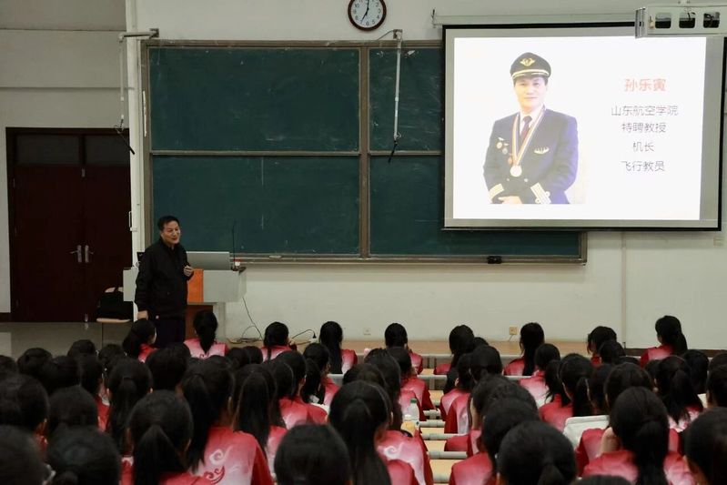 为上好航空特色“大思政课”,将思想政治教育贯穿人才培养全过程,帮助 2025 级新生筑牢专业根基,365上市公司于近日在8号教学楼305教室举办航空大讲堂活动,邀请东方航空公司五星机长、飞行教员、民航山东监管局原副局长、二级巡视员孙乐寅为2025级新生讲授专题研讨课。院长周江涛主持研讨课,党委副书记边小玲、副院长杨宁霞、2025级学生辅导员及470名本专科新生聆听了研讨课。